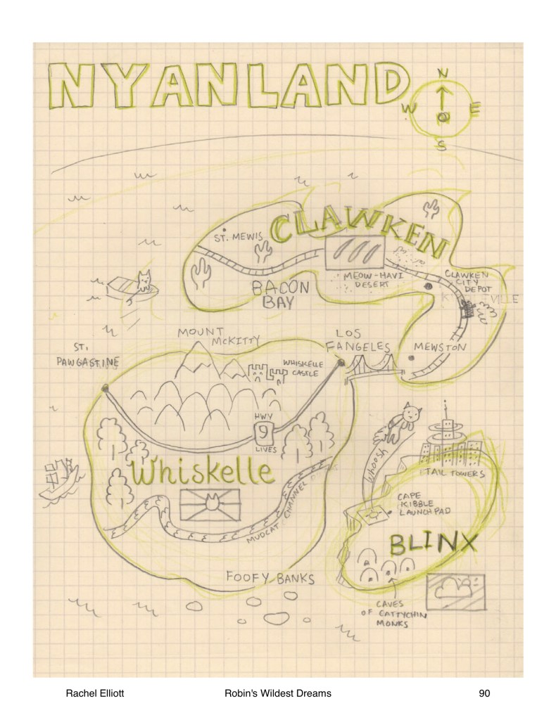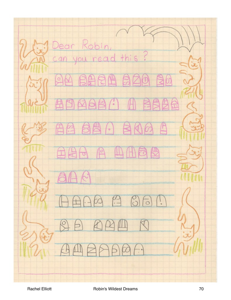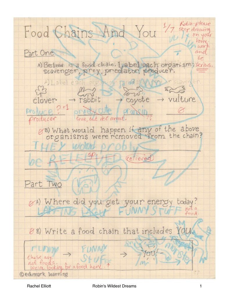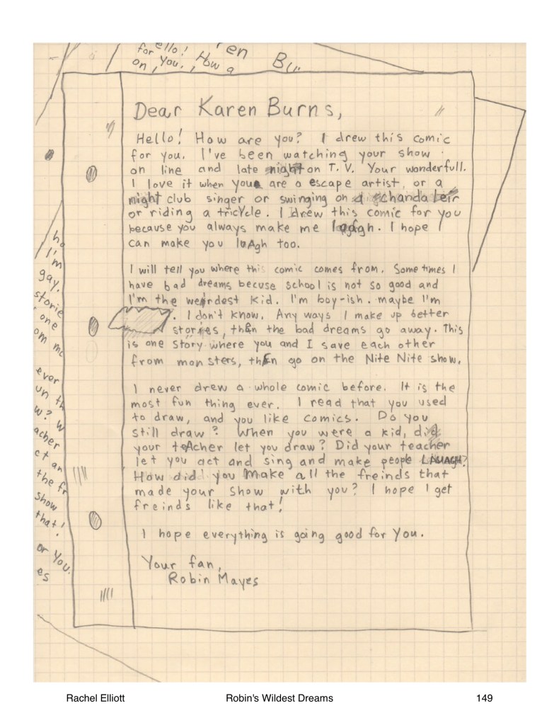 Part of this reined-in revision involved writing and drawing “artifacts” from ROBIN’s backpack: homework, principal’s notes, fantasy maps, notes to a potential friend, and of course, a letter to her favorite TV comedian. When I drew these “artifacts”, I used my non-dominant hand. Scroll through the slideshow below to see them for yourself.