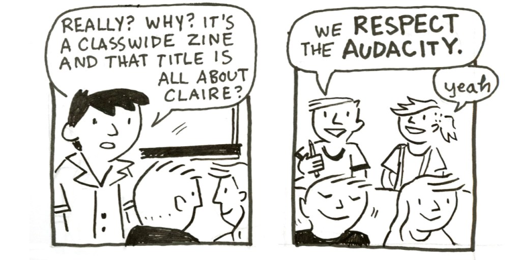 RESPECT THE AUDACITY! A mostly-true moment from a day spent brainstorming with kids at Lexington’s Living Arts and Science Center. Interested in a comic or zine workshop for your class or community group? Check out my school visit and workshop flyer.